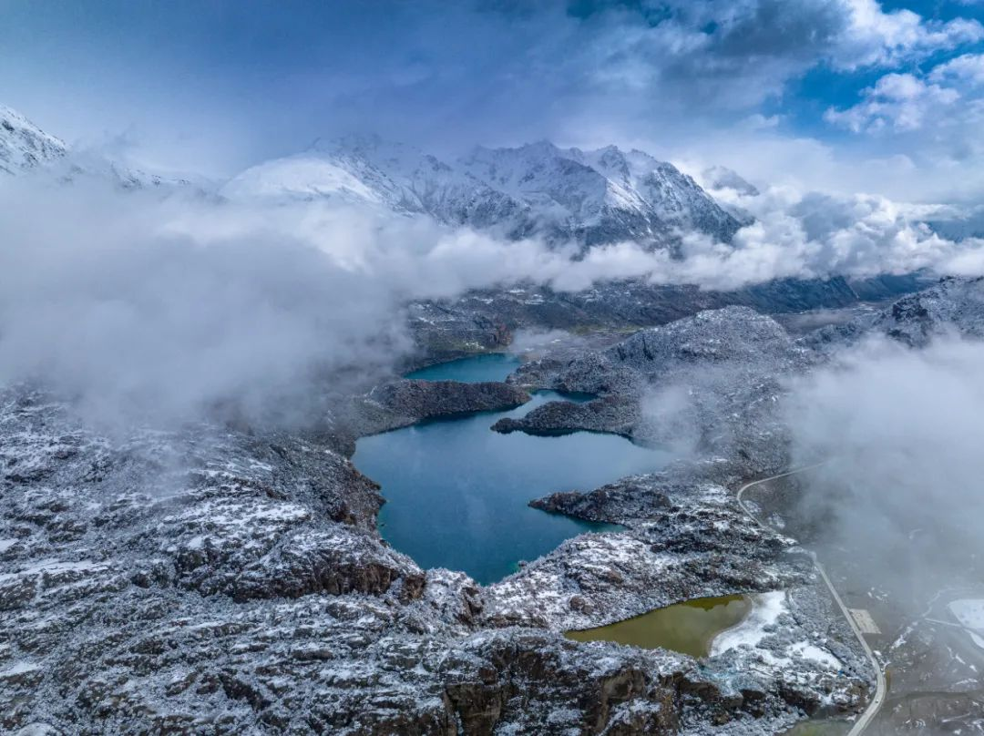 白湖如银盘皓月,皎洁无暇,仿佛是雪域仙子遗落在人间的一面镜子,映照着圣洁与静谧。鱼儿如同灵动的音符,在水中跳跃、穿梭,搅起层层涟漪,让整个水面充满了生机与活力。