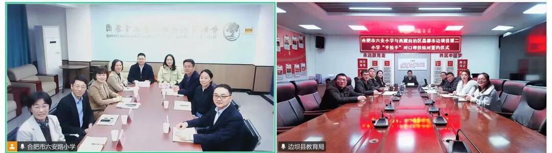 在中国电信集团对口援边工作队和中国电信安徽分公司的积极协调下,11 月 3 日,合肥市六安路小学与边坝县第二小学通过线上 “云签约”,举行结对帮扶签约仪式。
