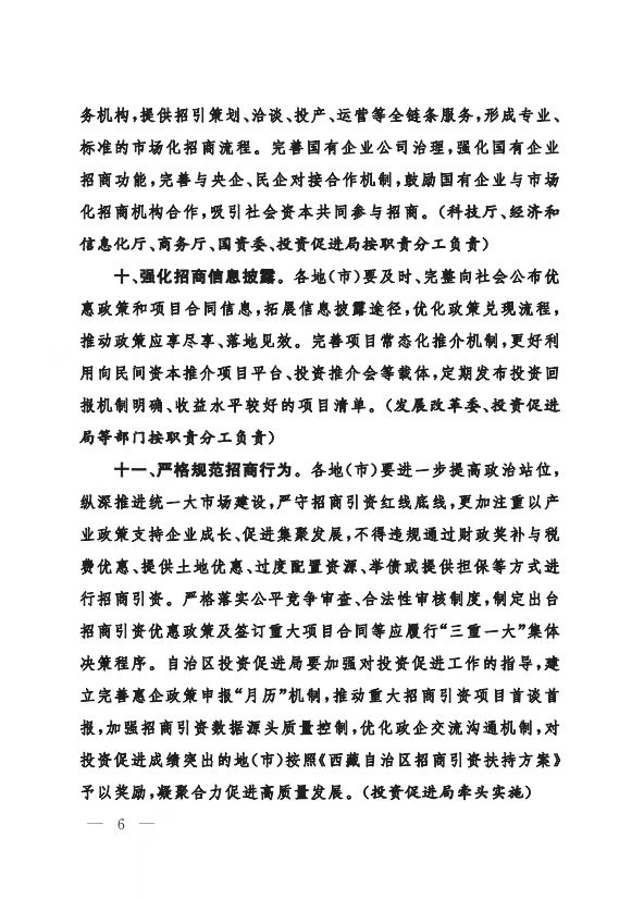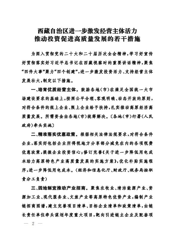 《西藏自治区进一步激发经营主体活力推动投资促进高质量发展的若干措施》