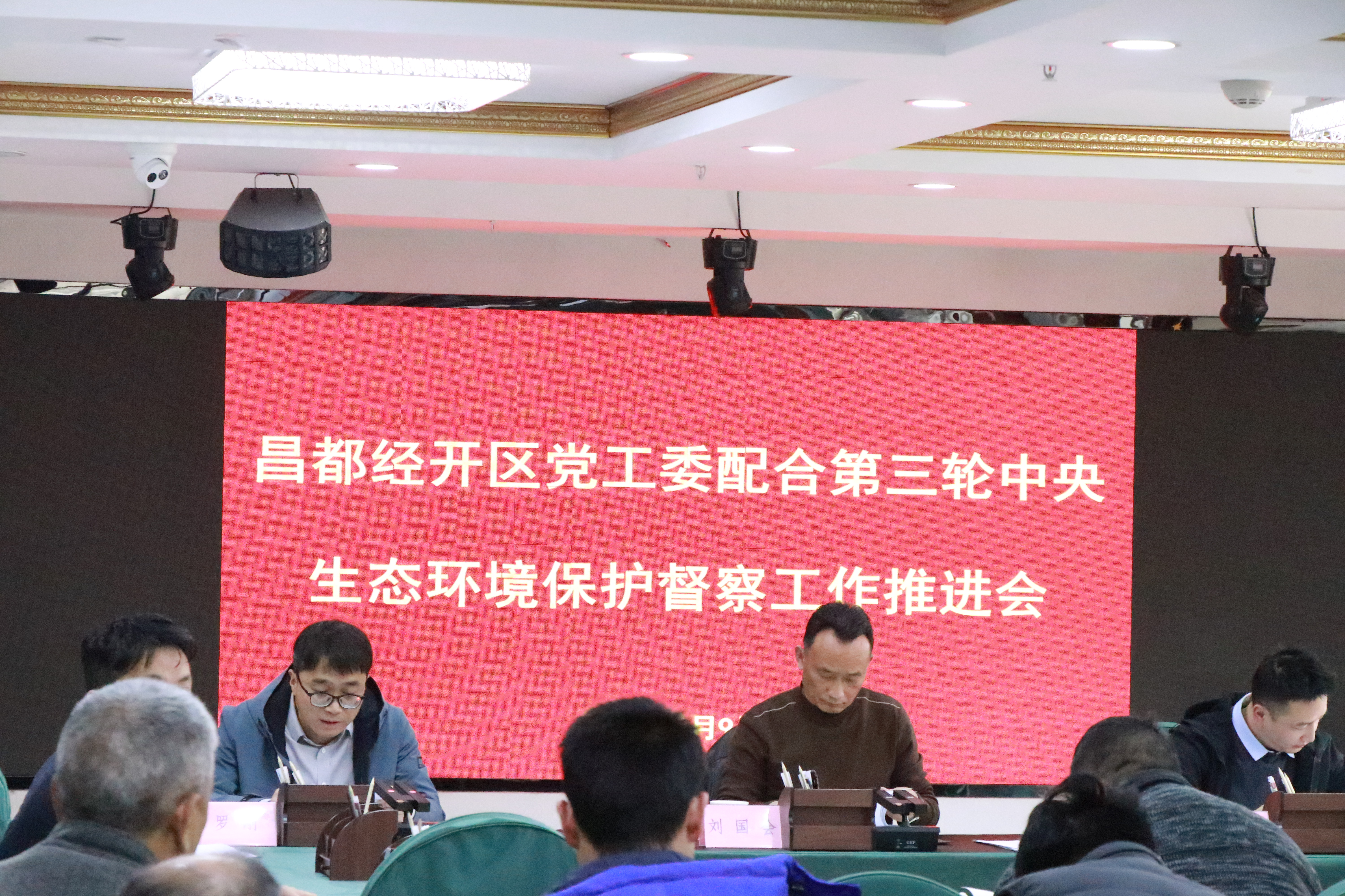 2026年3月9日,经开区党工委副书记、管委会主任刘国会同志主持召开经开区党工委配合第三轮中央生态环境保护督察工作推进会。经开区在家领导、各科室、各分局(中心、所、队)及企业负责人等共计65人参会。