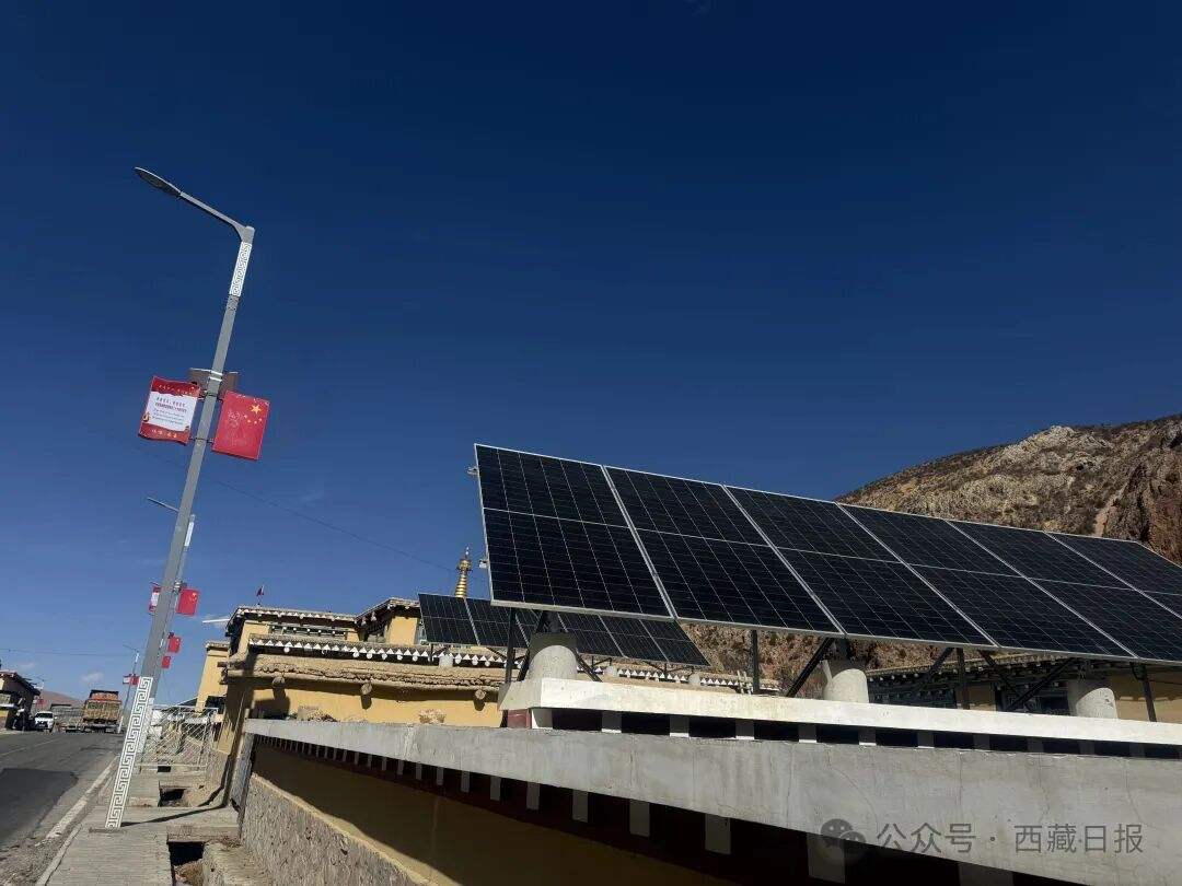 图为昌都市八宿县邦达镇邦达村清洁能源集中供暖设备太阳能板。记者 周婷婷 摄