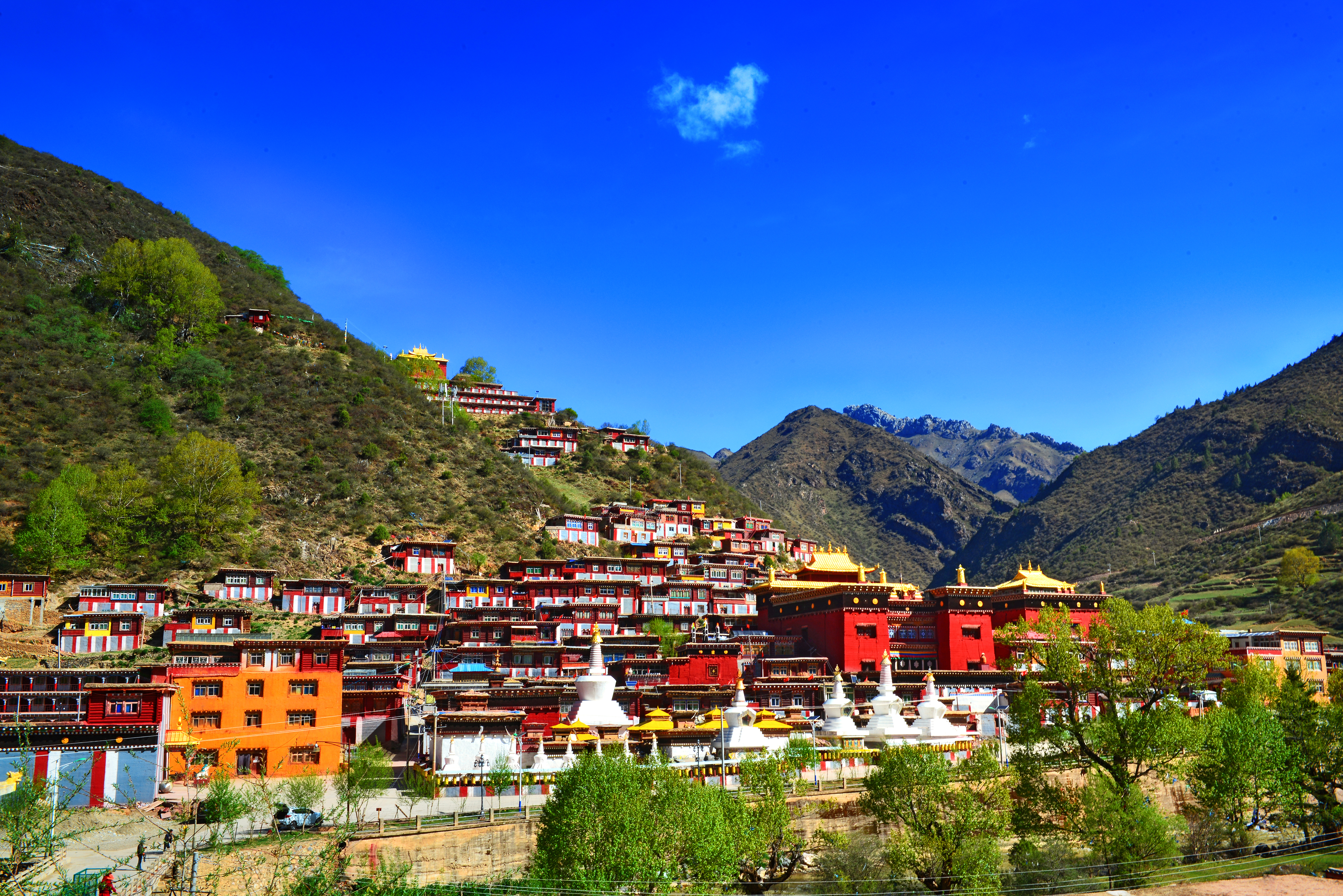 该寺是在宋朝宝祐元年也就是公元1253年修建的。距今已经有700多年的历史了。寺庙依山而建,规模很大,是昌都市影响较大的早期萨迦派寺庙之一。在寺庙修建的时期,西藏最有影响力的教派就是藏传佛教中的萨迦派,我们可能有人知道,藏传佛教有很多个教派,其中在各个时期最为兴盛的主要是格鲁派、宁玛派、噶举派和萨迦派,萨迦派的宗教势力在宋末元初的时候在西藏占主导的地位,萨迦派的法王萨班贡嘎坚参对于西藏正式并入中国版图,成为中国不可分割的一部分起到了重要的作用,而萨迦派的另一位法王大家可能听说过的叫做八思巴,他就是忽必烈的国师,原来的蒙古文叫做八思巴文就是他根据藏文创立的,而且西藏原来是没有哈达的,西藏的第一条哈达也是八思巴从内蒙带过来的。大家来西藏比较感兴趣的一个话题就是活佛转世,西藏绝大多数的教派的活佛是通过转世来传承,萨迦派是不同于其它教派的,它是通过血系的关系传承的,比如说父子或者叔侄等。