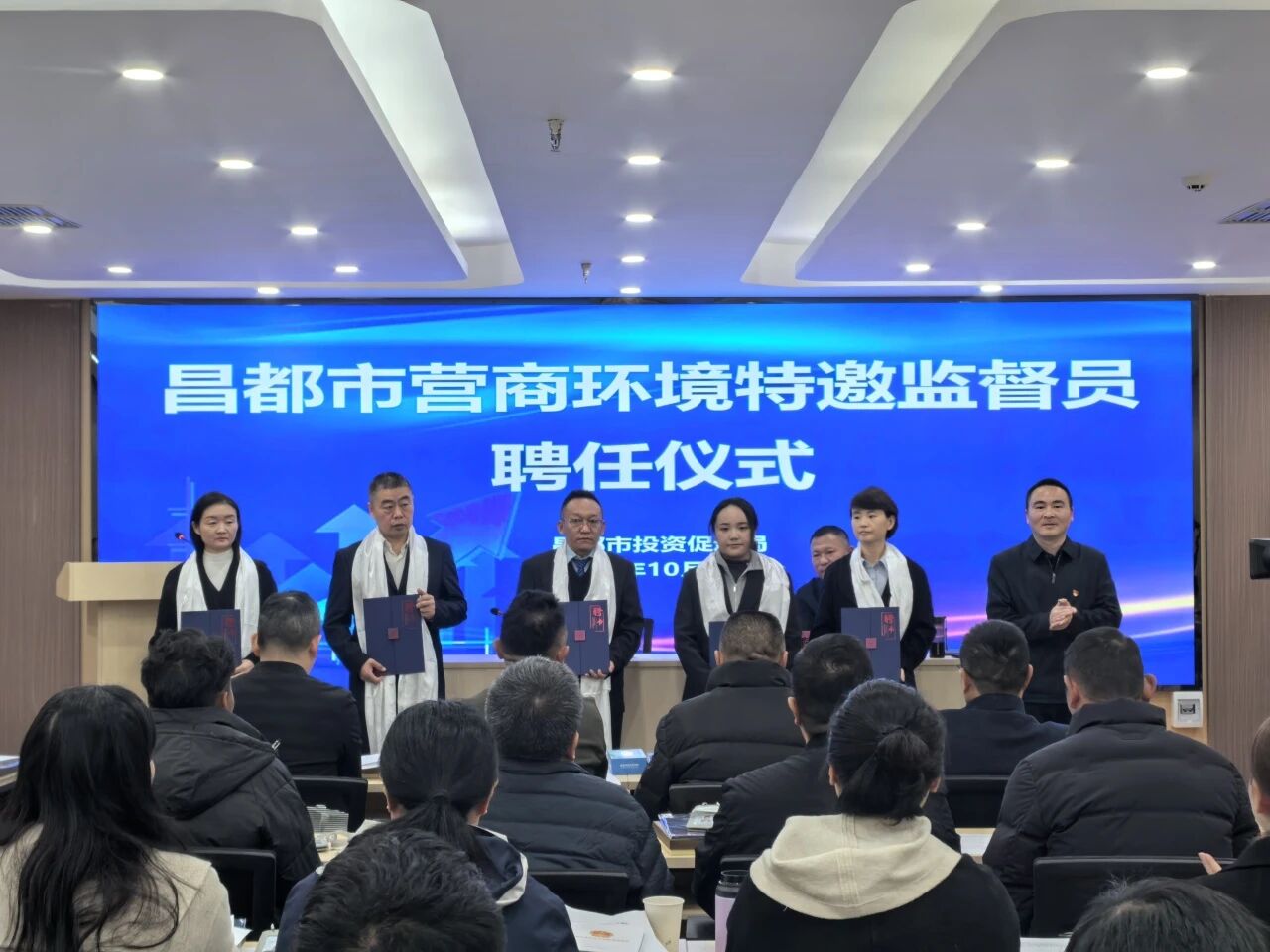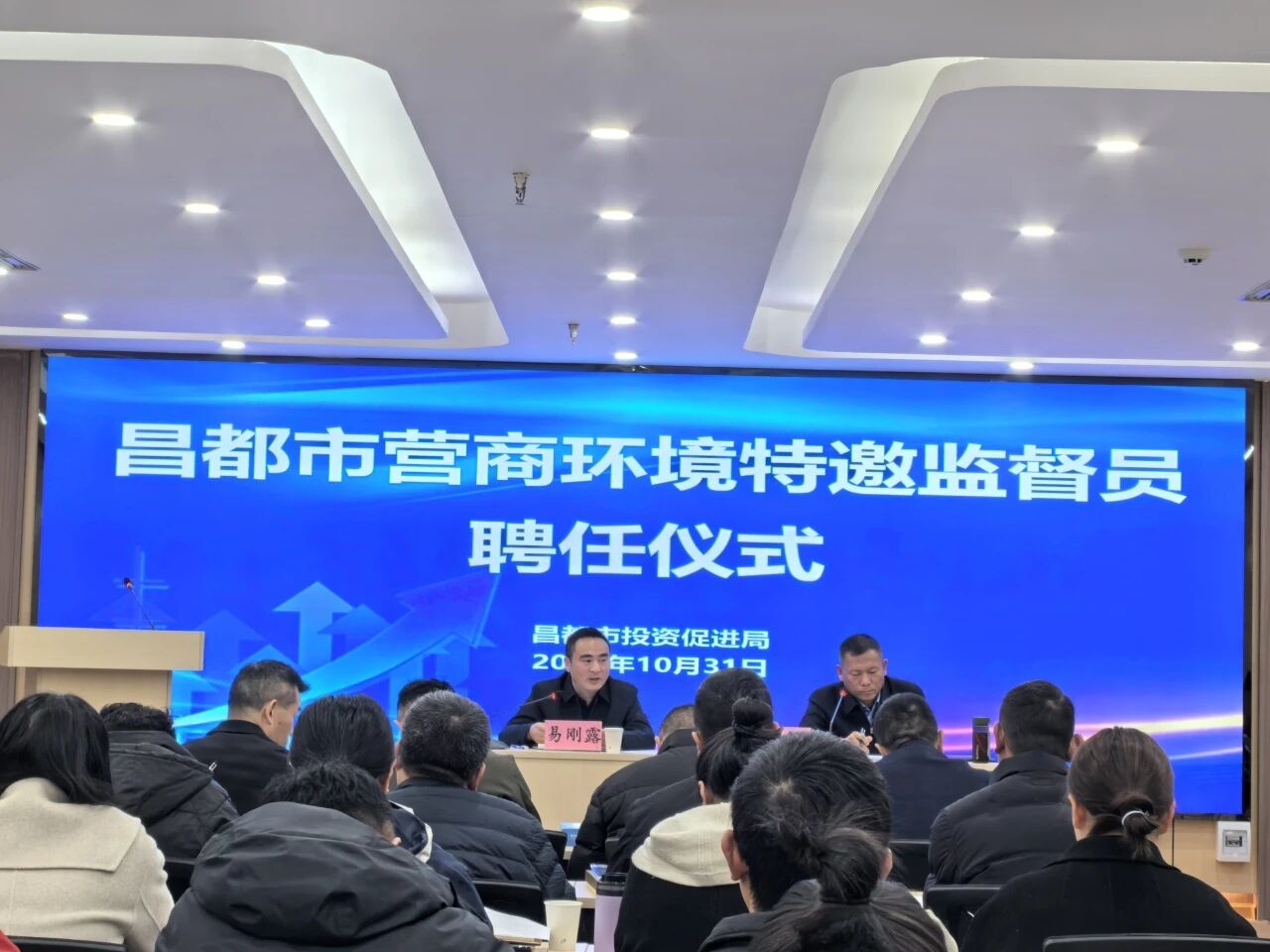 为深入贯彻落实党中央及西藏自治区关于优化营商环境的决策部署,持续提升治理效能,2025年10月31日,昌都市在昌都会议中心二楼党员综合活动中心会议室举行营商环境特邀监督员聘任仪式,市投资促进局党组副书记、副局长田野主持会议,党组书记、副局长易刚露出席并讲话,37名特邀监督员代表及市投资促进工作领导小组成员单位有关科室负责同志共50余人参会。
