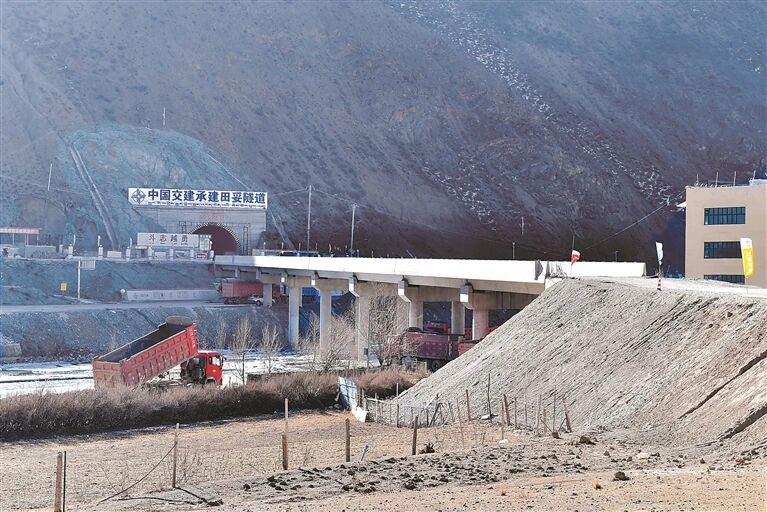 在他身旁,已经完成主体建设的田妥隧道和大桥正静静矗立,等待着必将到来的车水马龙的那天。(西藏日报记者 温凯 平措郎加)