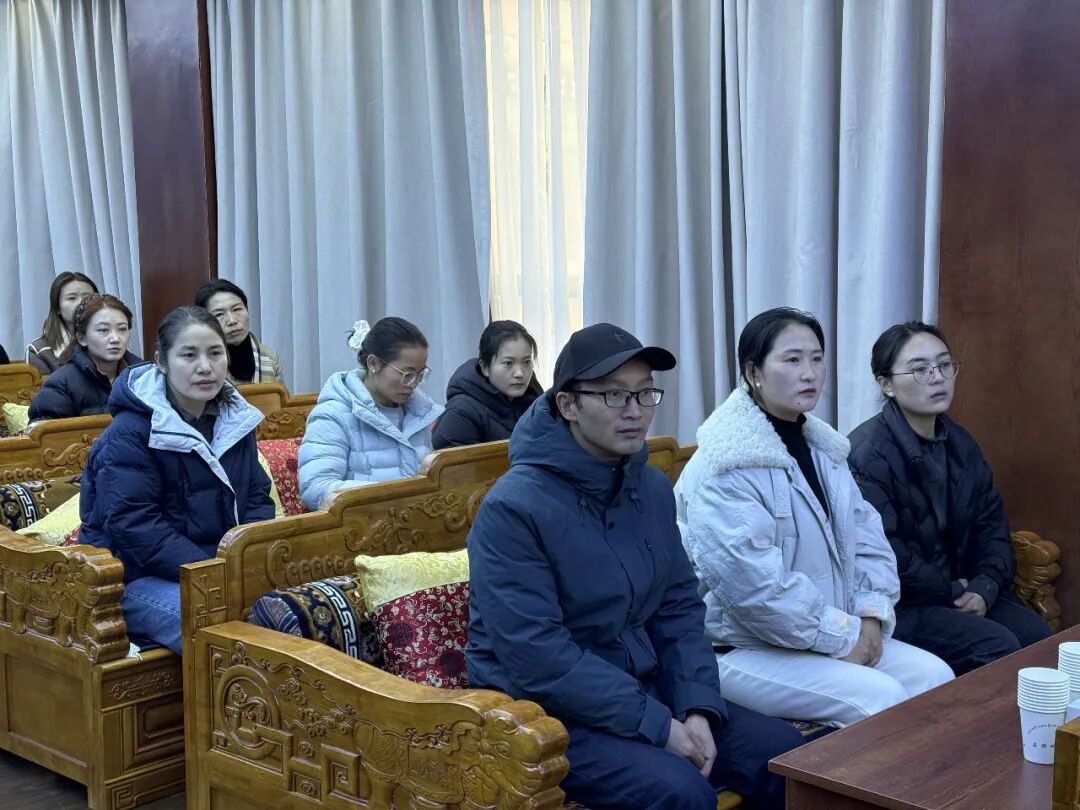 强巴林寺会议室内,庄重而肃静。民管会成员及僧人代表齐聚一堂,当报告中提及民族团结和宗教和顺的内容时,大家频频点头,认真记录。