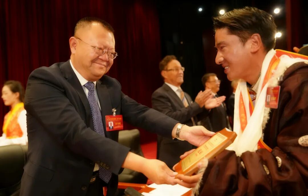 12月12日,“红色昌都·振兴奋进”群众性比赛活动第一届工作总结暨第二届动员部署会召开。这是庄劲松为获奖代表和优秀组织代表颁奖。记者 群旦次仁 摄