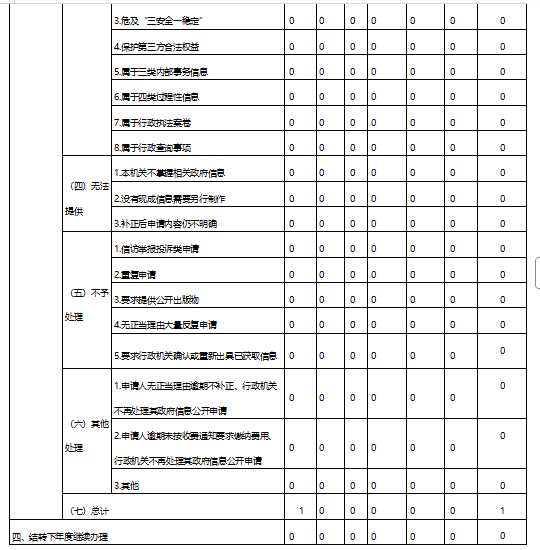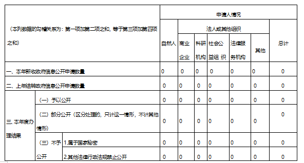 (二)依申请公开情况。完善政府信息公开申请办理工作机制,开展依申请公开渠道自查,畅通线上、线下申请渠道。2024年度,县政府办公室共收到申请0件,办理0件。完善案件办理协调机制,对涉及土地征收、招投标类的信息公开申请,加强具体征收实施单位的沟通对接,确保答复准确一致,减少不必要的行政争议。