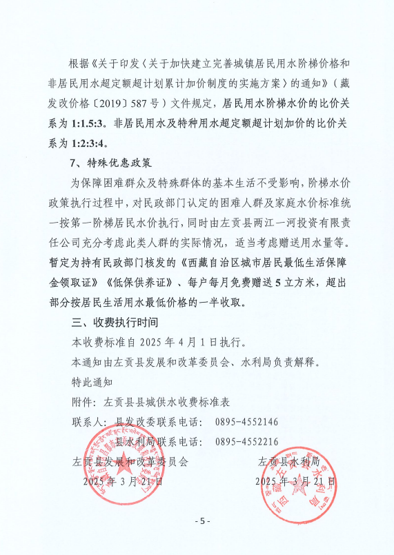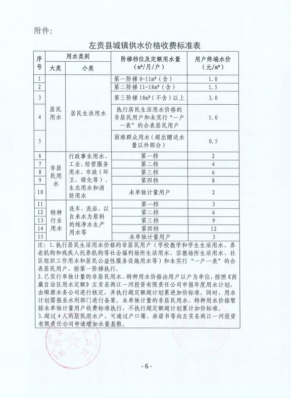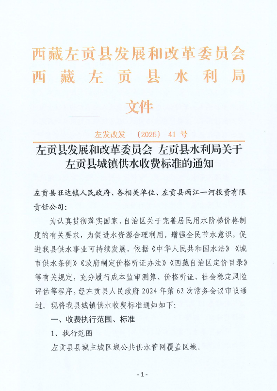 左贡县发展和改革委员会 左贡县水利局关于左贡县城镇供水收费标准的通知